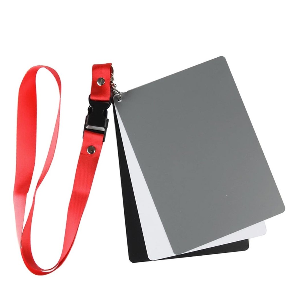 Thẻ cân bằng trắng gồm có 3 màu: xám (18%) – trắng – đen, bạn có thể sử dụng nó tùy thuộc vào chủ thể và cảnh vật. Thẻ xám có tỉ lệ phản xạ là 18%. Đây là tỉ lệ phản xạ trung bình của các màu sắc trong tự nhiên.