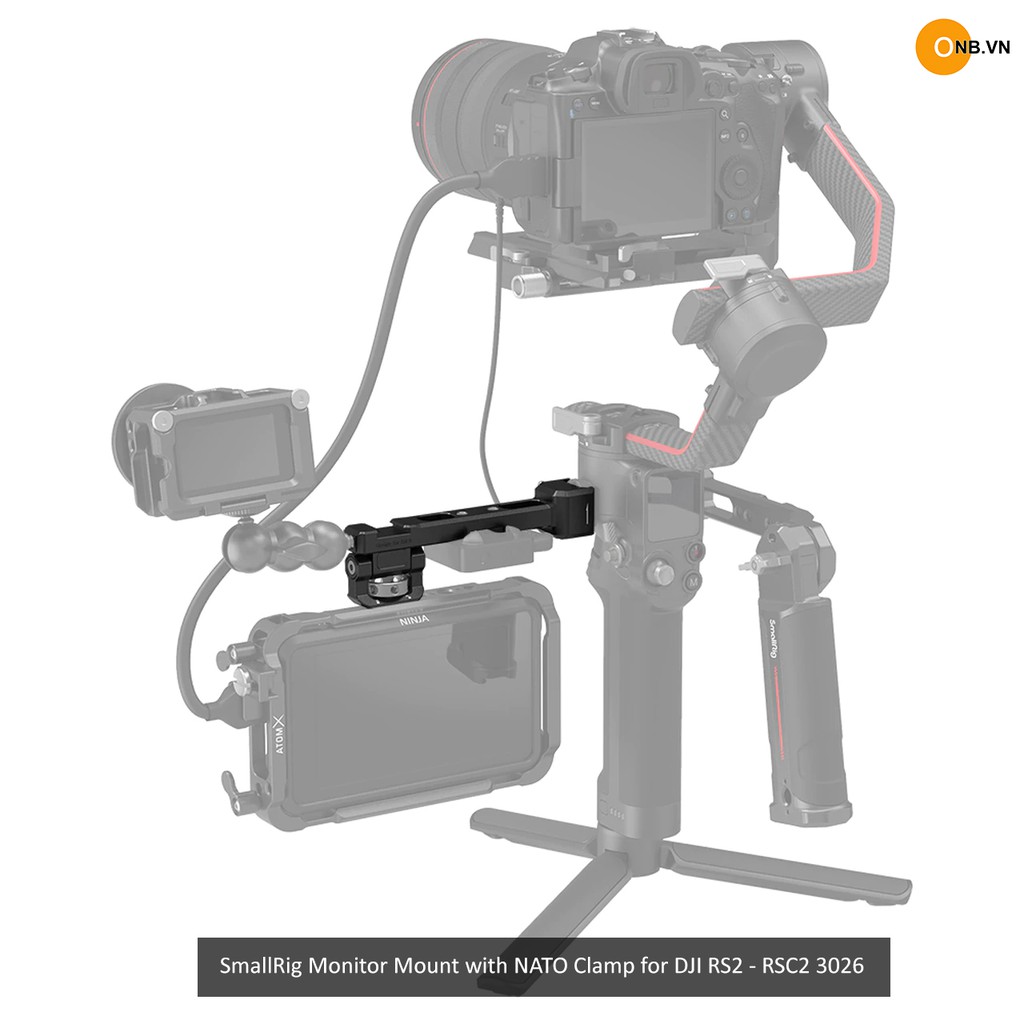 SmallRig Monitor Mount with NATO Clamp for DJI RS2 RSC2 code 3026.Thiết kế riêng cho dòng Gimbal DJI Ronin S, SC, RS2, RSC2 , hàng chất lượng, làm bằng kim loại chắc chắn gắn màn hình quay, phụ kiện cần thiết khi quay phim.
