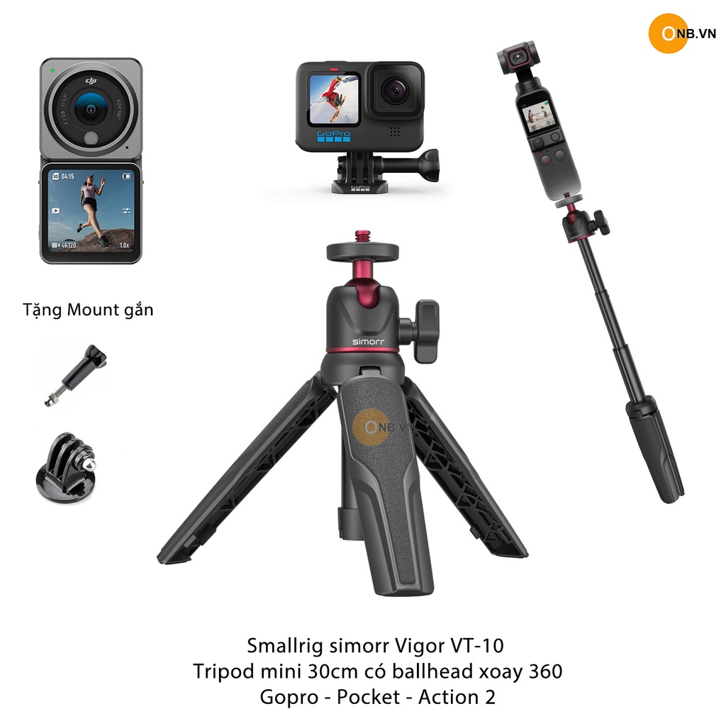 Smallrig simorr Tripod VT-10 màu đen dài 30cm thu gọn chỉ 16cm, có ballhead xoay 360 cho Gopro 10 - Pocket 1 - Pocket 2 - Osmo Action 1 - Action 2 ... code 3476 SmallrigThiết kế đẹp chất liệu nhựa ABS cứng cáp, tay cầm có phủ cao su cho cầm thoải mái, chắc hơn.