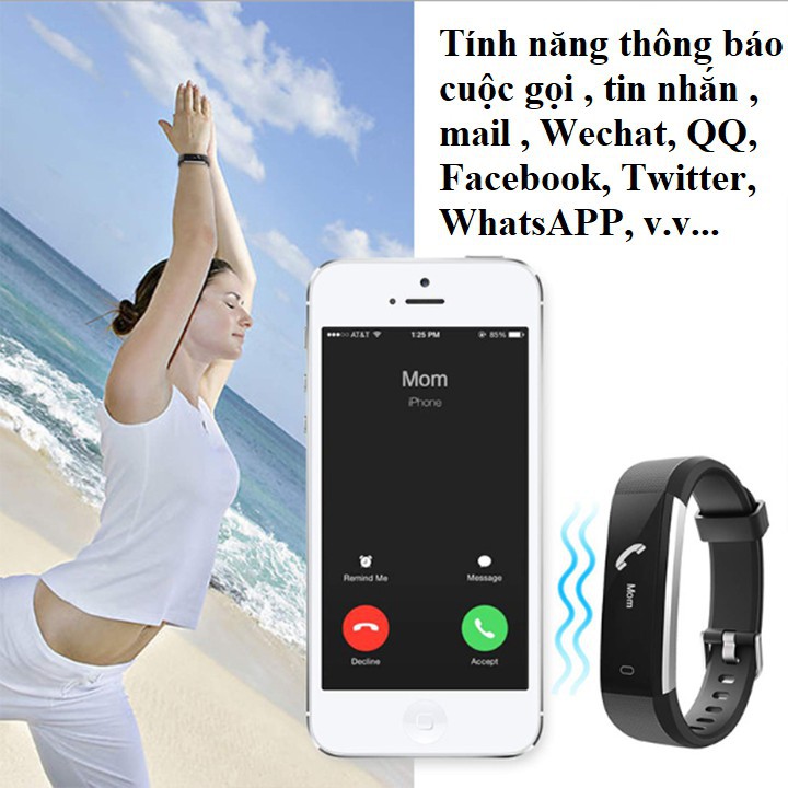 Đồng hồ thông minh Smart band ID115Plus giúp đo nhịp tim, huyết áp, theo dõi lượng oxy trong máu, đo bước đi (cảm biến 3D), lượng calo tiêu thụ, khoảng cách đi được, kết nối Bluetooth, nhắc nhở cuộc gọi, nhắc nhở thông tin, kích hoạt màn hình bằng cách giơ tay, đồng hồ báo thức thông minh, chế độ tìm vòng tay, chụp ảnh từ xa, nhắc nhở ít vận động, theo dõi giấc ngủ, lưu ý thông tin (SMS, Wechat, QQ, Facebook, Twitter, WhatsAPP, vv)Tải ứng dụng : LEFUND HEATH về điện thoại để kết nối với đồng hồ thông minh nhé