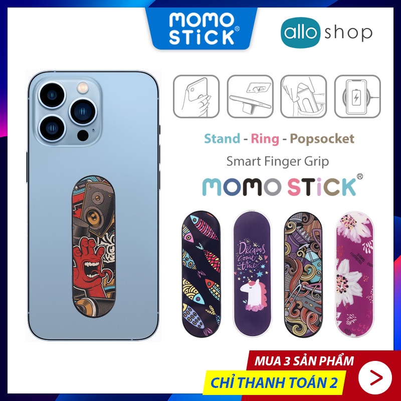 MOMOSTICK là một phụ kiện độc đáo đến từ Hàn Quốc không thể thiếu cho người dùng điện thoại ngày nay, hỗ trợ bạn sử dụng máy một cách an toàn hơn chống rơi rớt và giật điện thoại, mà còn thêm nhiều tính năng hữu ích khác như: Làm giá đỡ để bàn, nhẫn đeo chụp anh tự sướng dễ dàng và rất nhiều tính năng thú vị khác.---------------------------------------------
