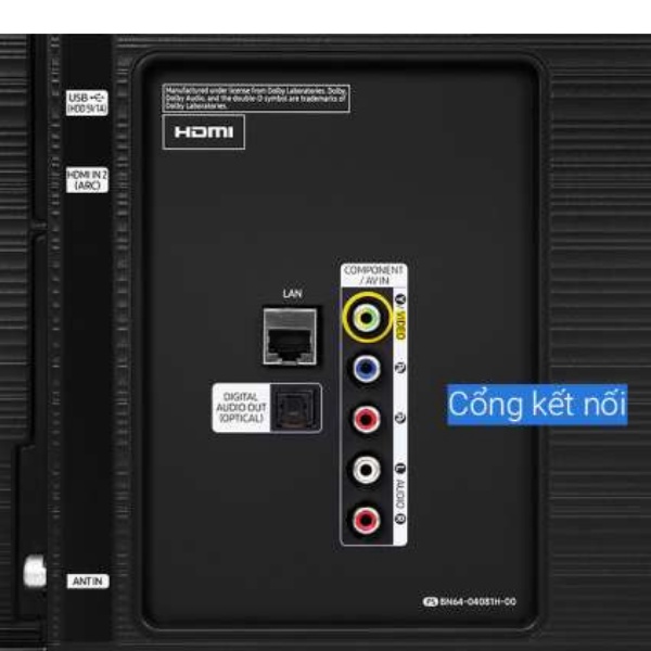 Cổng nhận hình ảnh, âm thanh: 2 cổng HDMI có 1 cổng HDMI ARC, 1 cổng Composite, 1 cổng Component