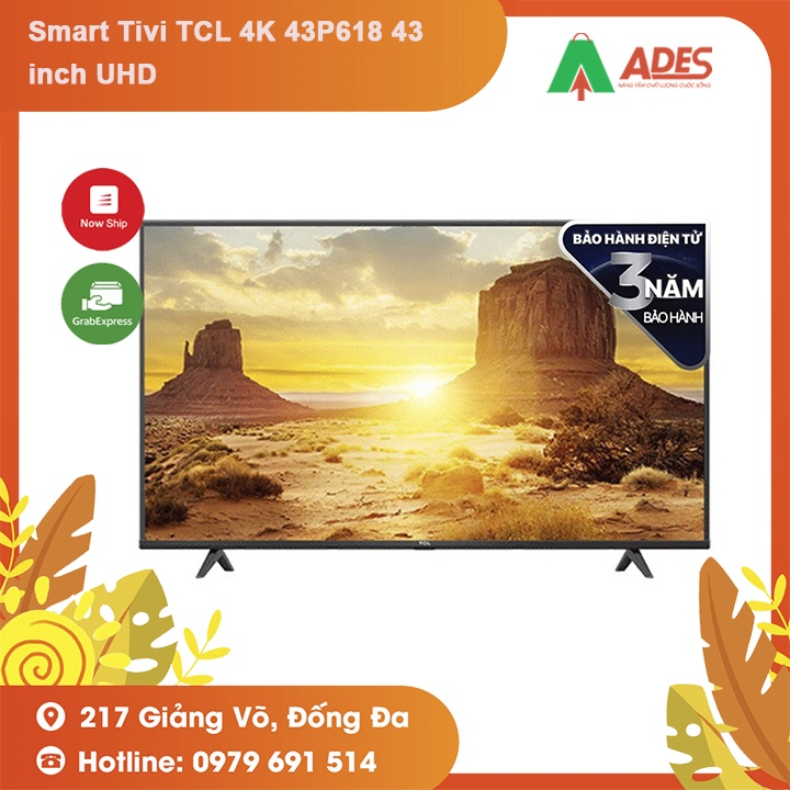 Thiết Bị Điện Gia Dụng > Tivi & Phụ kiện > Tivi || Smart Tivi TCL 4K 43P618 43 inch UHD - Hệ điều hành Android 9.0 - Bảo hành chính hãng 36 thángCòn hàng