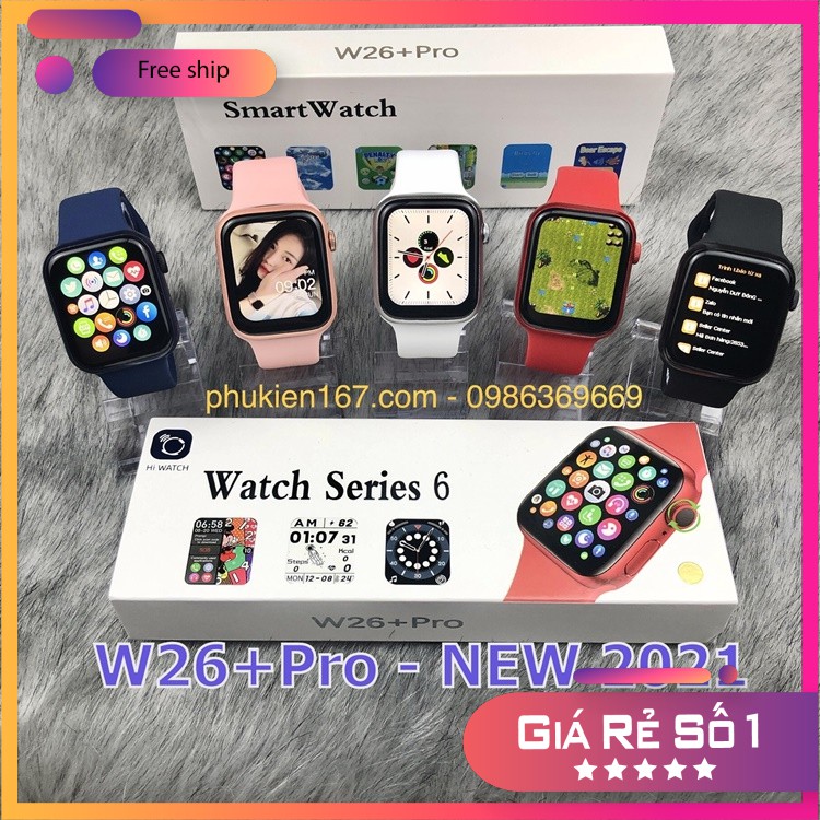 Điện Thoại & Phụ Kiện > Thiết bị đeo thông minh > Đồng hồ thông minh & Vòng đeo tay sức khỏe || [Smart Watch W26+Pro] Đồng hồ thông minh W26+Pro Series 6 - Cài hình nền - Nút tròn xoay được - Có game - Cài mật khẩuCòn hàng