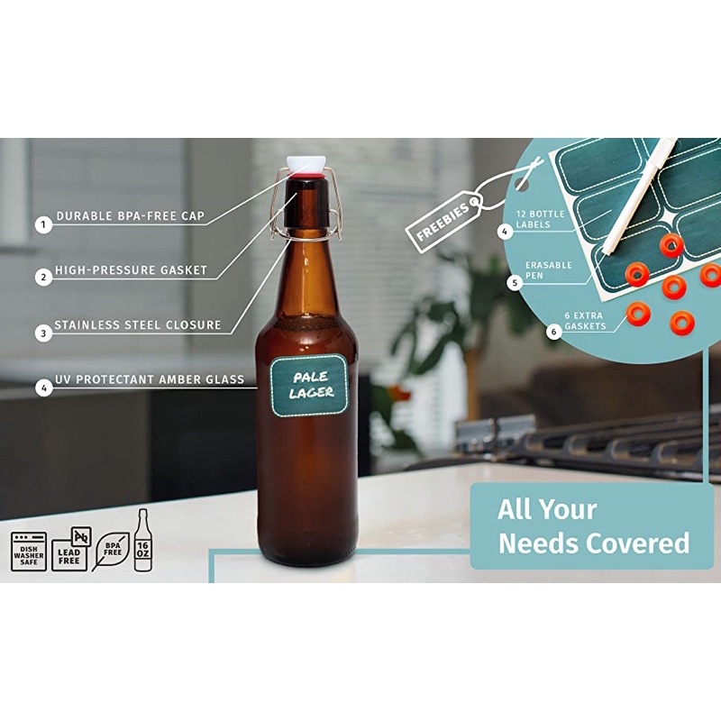 Nhà cửa & Đời sống > Bộ đồ bàn ăn > Bình nước & phụ kiện || [Tốt số 1]Chai thuỷ tinh nâu đen 330ML lên men F2 nắp gài water kefir nấm nước dừa kombucha teaCòn hàng
