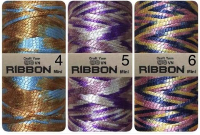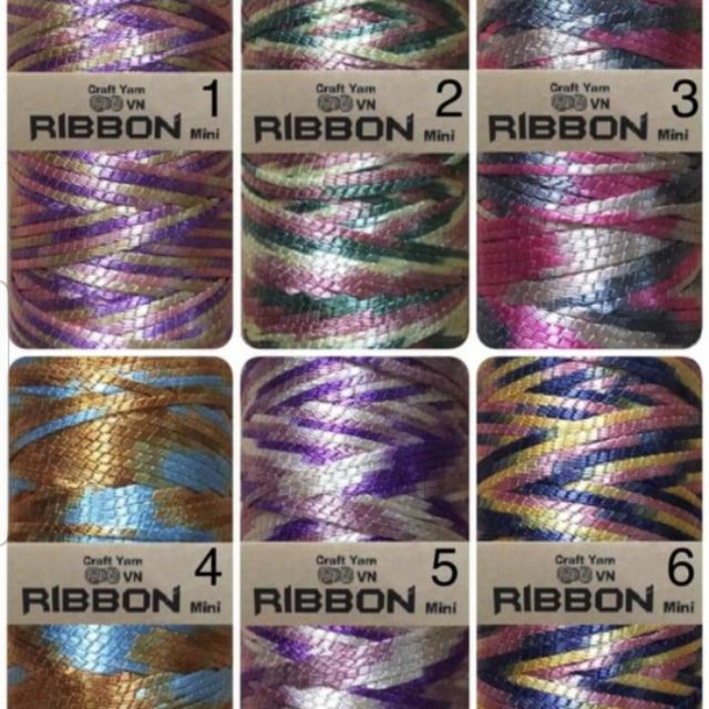 Sợi ribbon loang 2mm. Móc kim 1m75 ->2.5mm.Có 9 màu loang như hình.