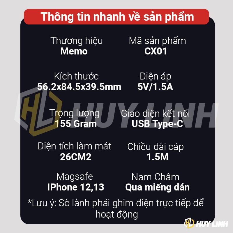 Điện Thoại & Phụ Kiện > Phụ kiện > Quạt USB & Quạt điện thoại || [Mã ELHA22 giảm 5% đơn 300K] Sò lạnh từ tính Memo CX01 có hỗ trợ Magsafe - Dùng được trên điện thoại và máy tính bảngCòn hàng