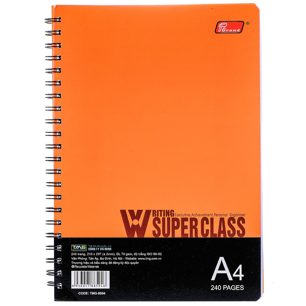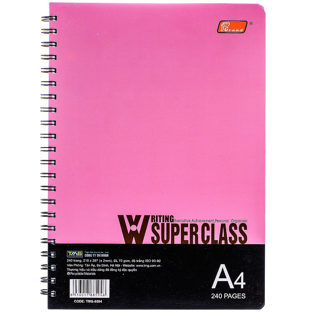 - Sổ Lò Xo Grand 240 Trang Bìa Nhựa có kích thước khổ , là khổ giấy vừa phải, vừa dễ dàng cho bạn khi để trong cặp, trong balo, vừa có thể dùng để ghi chép một lúc nhiều thông tin hoặc cần vẽ nhiều hoạ tiết.- Sổ dày, bao gồm 240 trang với định lượng 70 gsm, giúp bạn sử dụng được nhiều hơn, phù hợp cho mọi ghi chép hằng ngày của bạn.