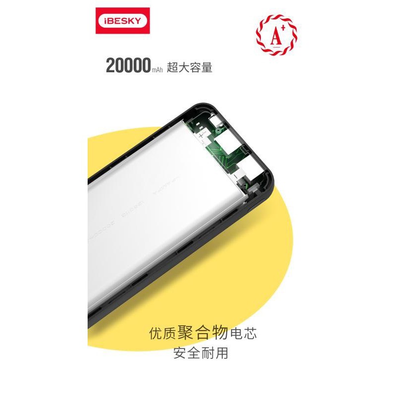 Pin sạc dự phòng iBESKY S7 20000mAh lõi Li-Polymer 2 cổng sạc - Hàng chính hãngTHÔNG TIN SP: