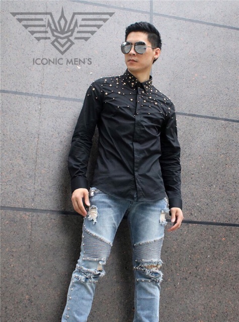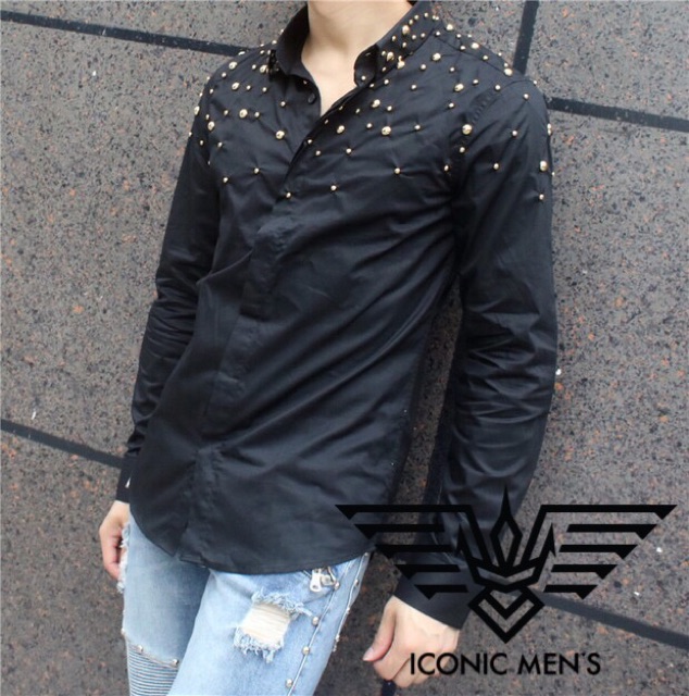 Sơ mi nam cao cấp !Trên nền đen và trắng cơ bản được điểm tô thêm những hạt cườm giúp chiếc áo không còn đơn điệu mà tăng thêm sự cá tính , nổi bật và vẻ nhấn nhá một cách độc đáo mới lạ!