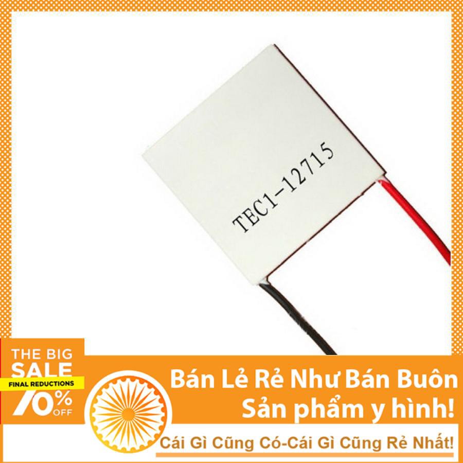 Thông số kĩ thuật:- Module Chuyển Nhiệt TEC1-12715 40x40MM (150W).- Điện áp từ 5 đến 12VDC.- Dòng tiêu thụ max 11A.- Chip TEC1 - 12715.- Kích thước 40x40x3.2mm.- Công suất làm lạnh 142W.- Lưu Ý: Khi sử dụng phải có tản nhiệt ở mặt nóng, tuyệt đối không cấp điện quá 10S nếu không có tản nhiệt.Trường hợp cấp nguồn cho module mà không có tản nhiệt quá 10s sẽ làm cháy sò.
