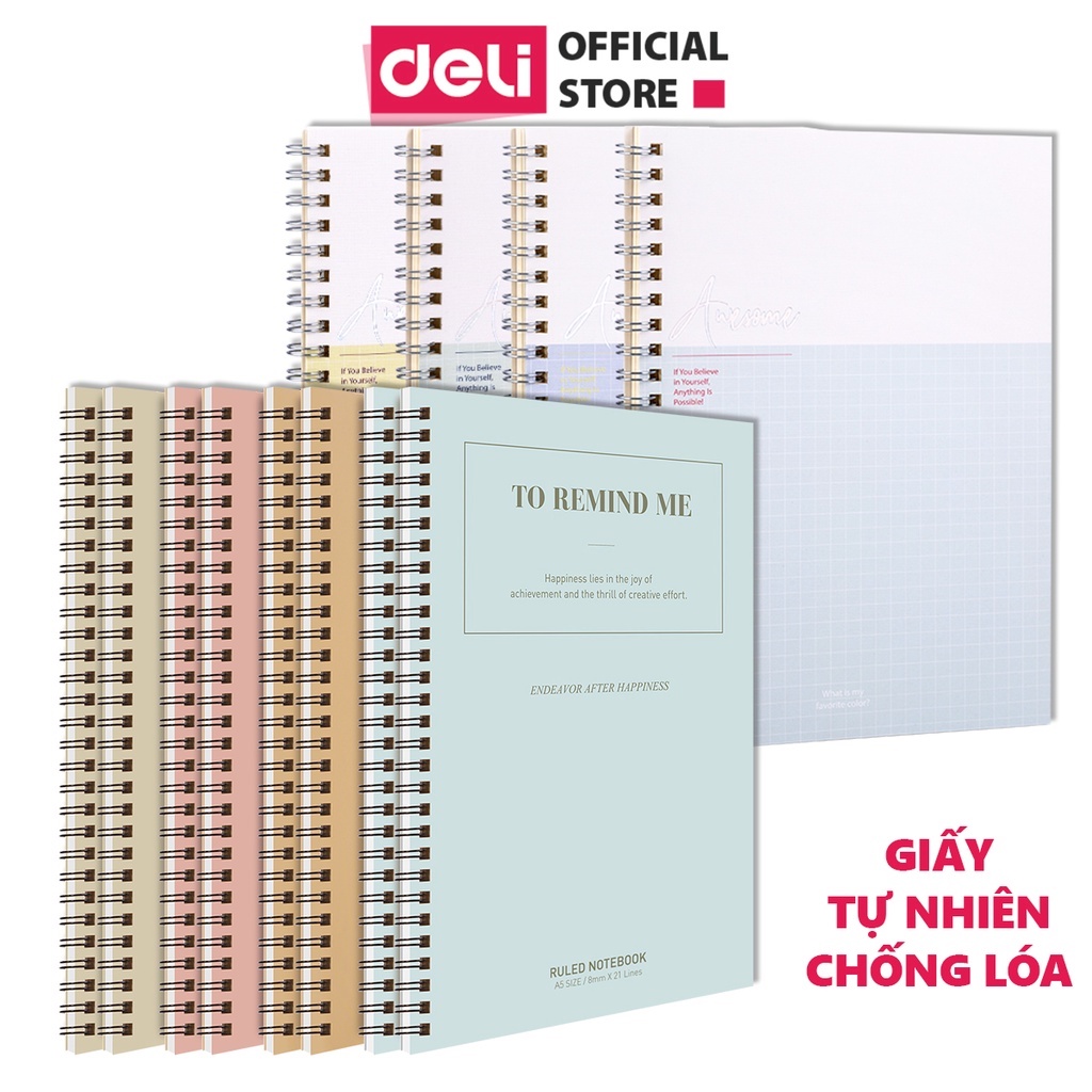 Sổ tay ghi chép A5 gáy xoắn 60 trang Deli - Kẻ ngang - Màu ngẫu nhiên===============================================