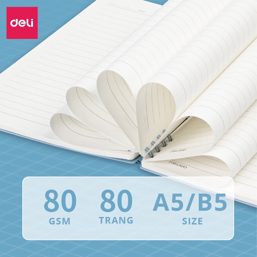 Văn Phòng Phẩm > Sổ & Giấy Các Loại > Giấy In || Sổ tay ghi chép Deli - giấy kẻ ngang gáy lò xo 80 trang A5/B5-24202/24203Còn hàng