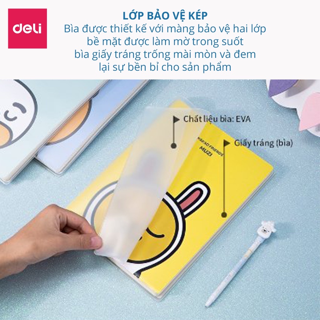 - Tên sản phẩm: Sổ tay ghi chéo Deli x Kakao Friends có bọc.