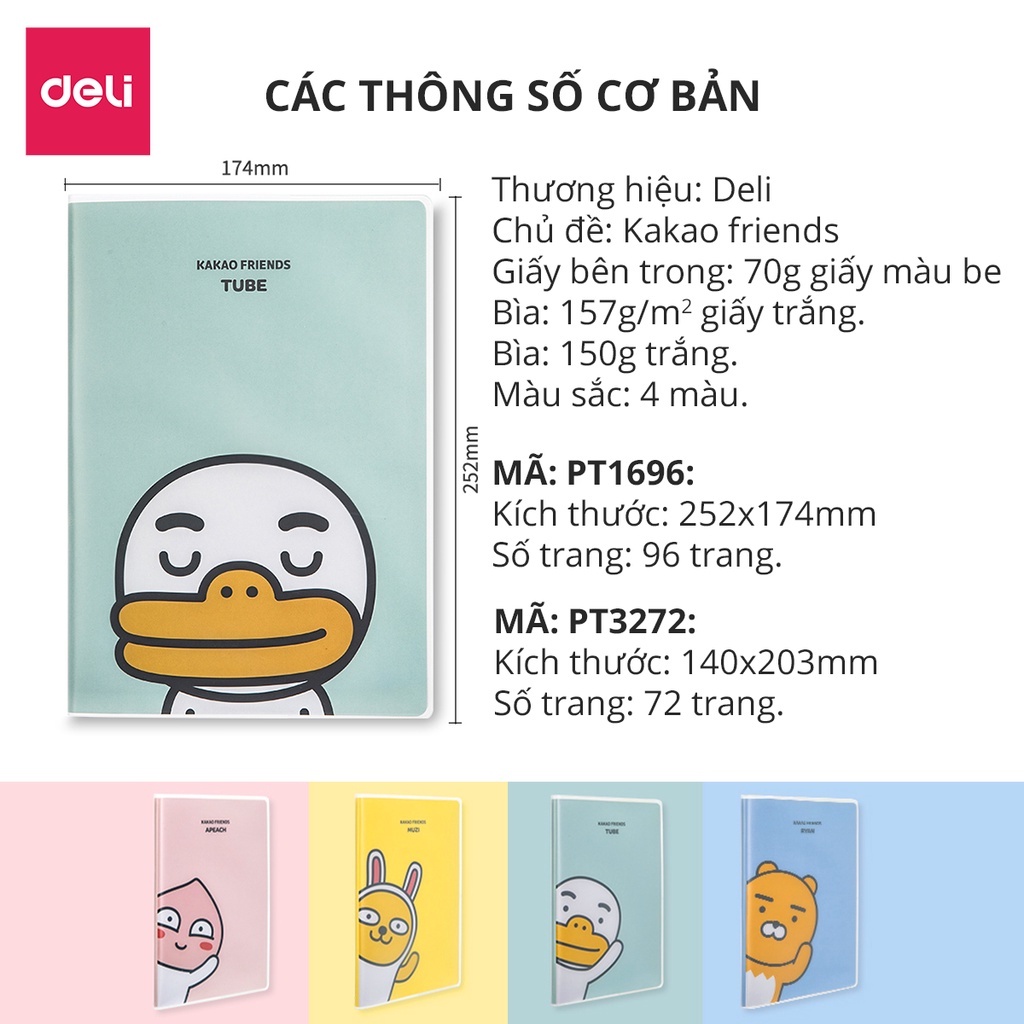 Giới thiệu Sổ tay ghi chép Deli x Kakao Friends - A5/B5 - 72/96 trang - PT1696/PT3272