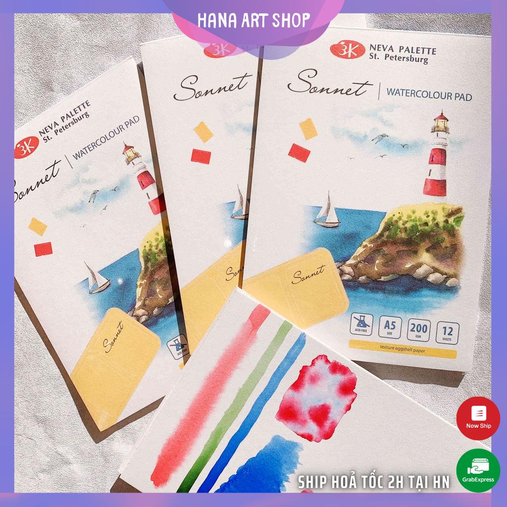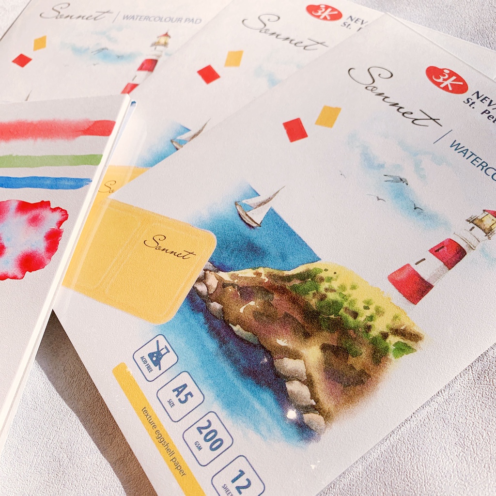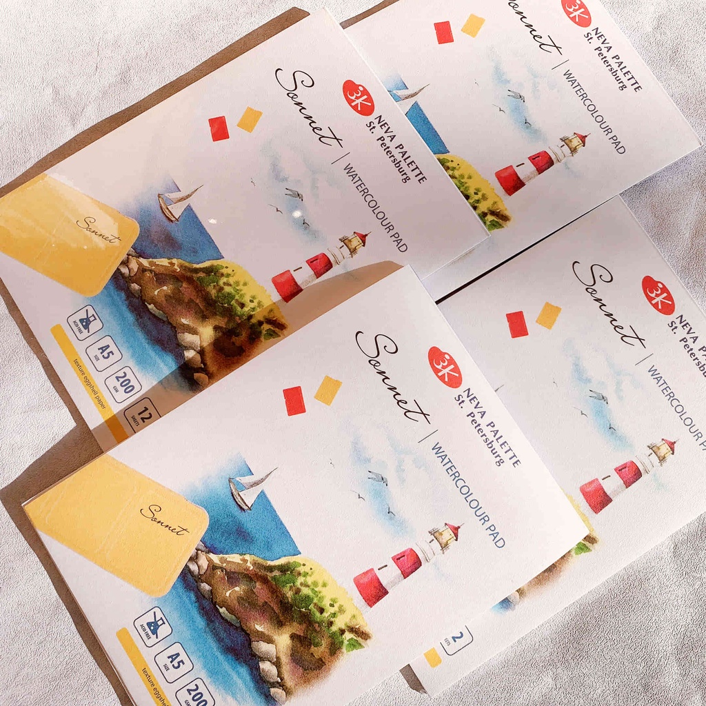 Văn Phòng Phẩm > Sổ & Giấy Các Loại > Giấy In || Sổ vẽ màu nước Sonnet - NEVSKAYA PALITRA - Watercolour Pad - 200Gsm - Acid Free - 12 tờCòn hàng