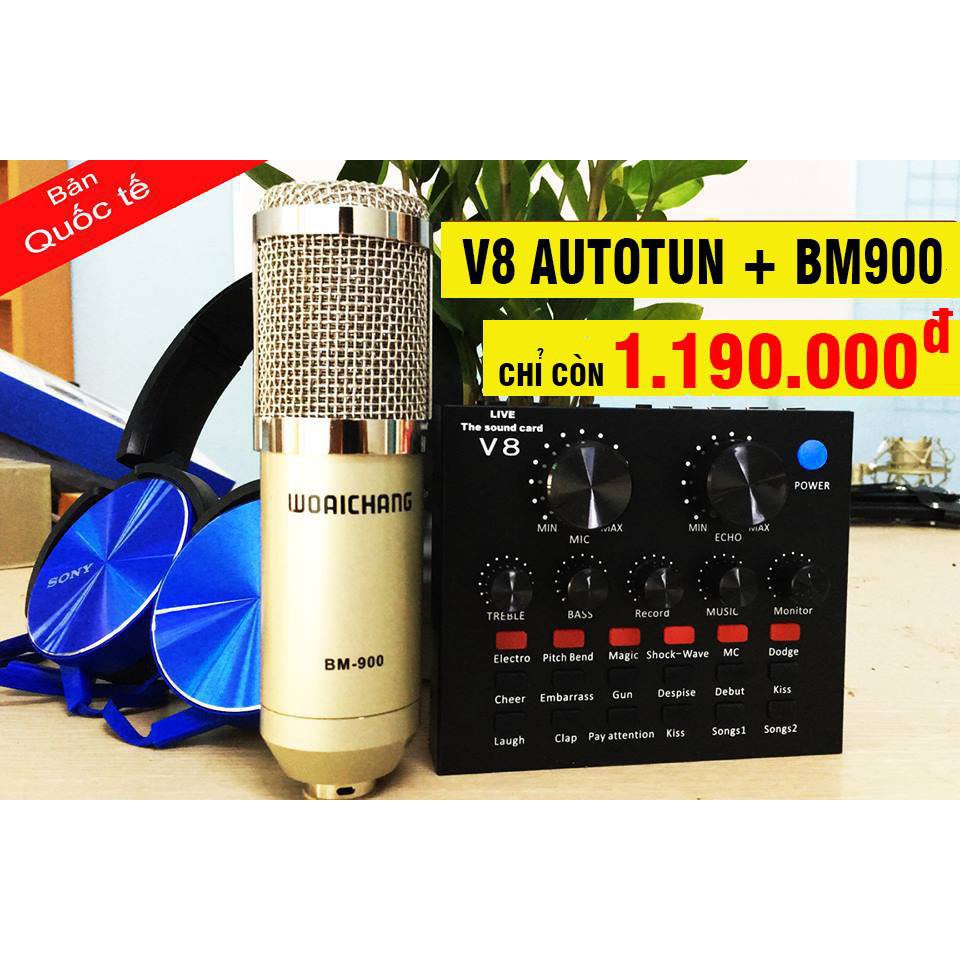 Combo trọn bộ mic thu âm V8 (bản quốc tế)+Mic BM900 (Tặng kèm tai nghe cao cấp)#KHUYẾN_MÃI CỰC SỐC