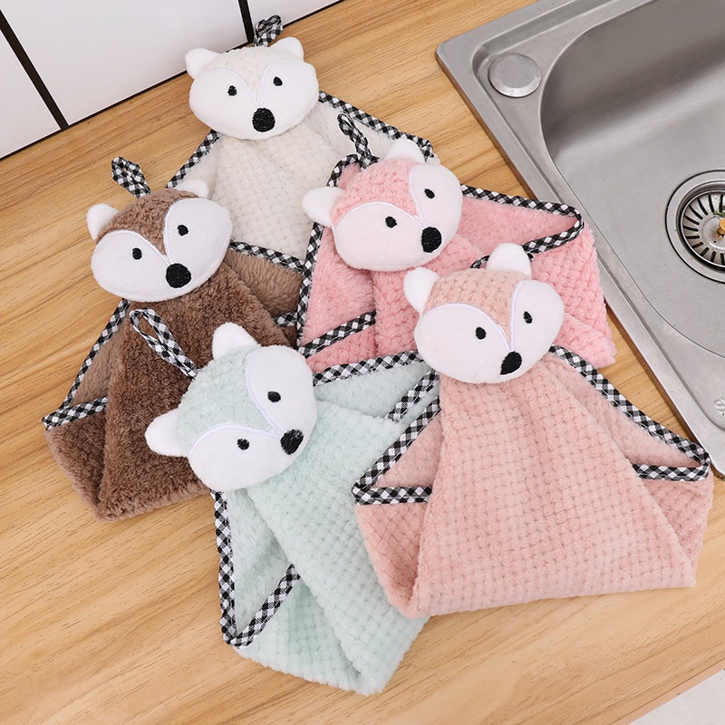 Khăn tay hình cáo hoạt hình dễ thương hoạt hình thấm hút nước và khăn lau bát đĩa mềm mại, có khả năng hút nước cao, có thể nhanh chóng hút ẩm cho tay bạn.