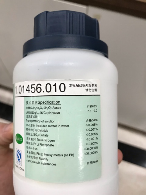 Giới thiệu Sodium citrate tribasi Trisodium citrate dihydrate Xylong CAS 6132-04-3 C6H5Na3O7·2H2O chai 500g