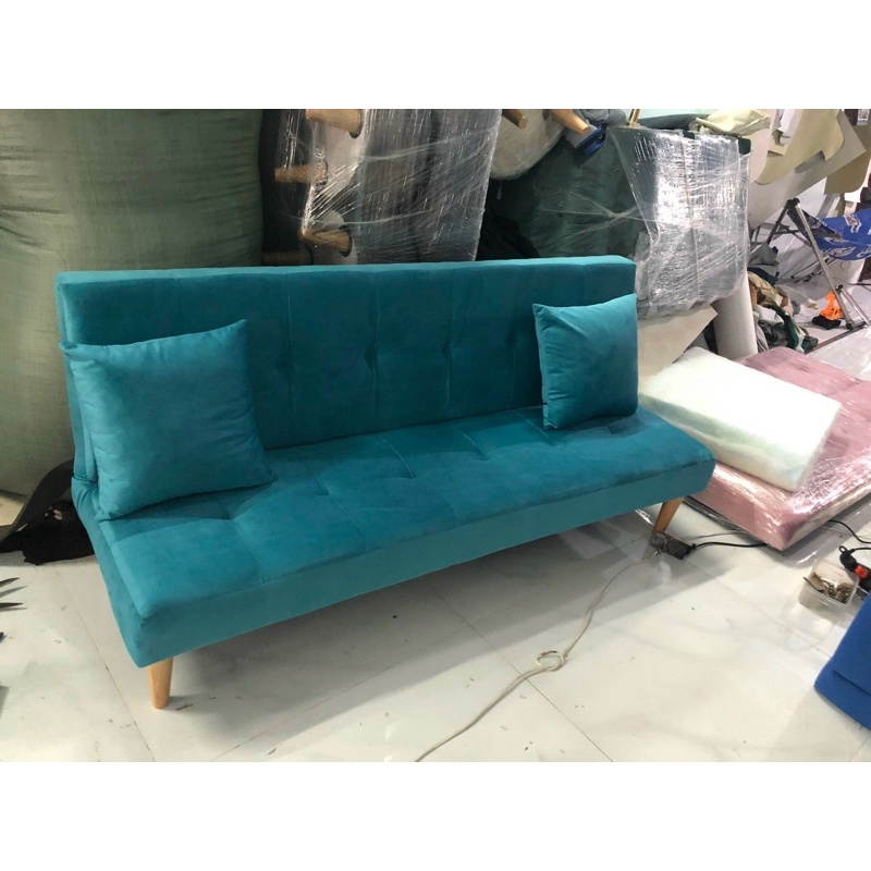 Chất liệu vải nhung đều được.Kich thước dài 1.7m ( bật ra thanh giường bề ngang 1m) có thể ngồi được 3-4 người.