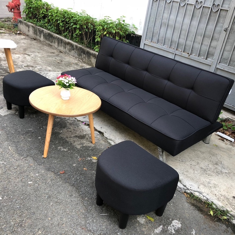 Giới thiệu Sofa Bed - Sô pha Giường bọc vải bố màu đen có bàn và ghế đôn - Ghế sô pha xuất khẩu