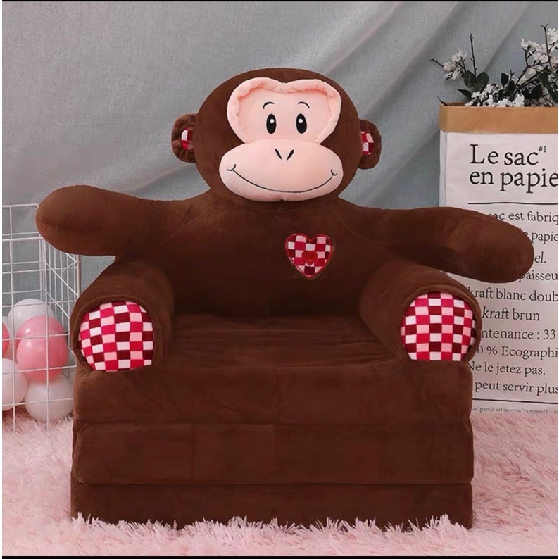 SOFA GIƯỜNG - GHẾ LƯỜI BÔNG CHO BÉ HÌNH THÚ - KHỈ NÂU