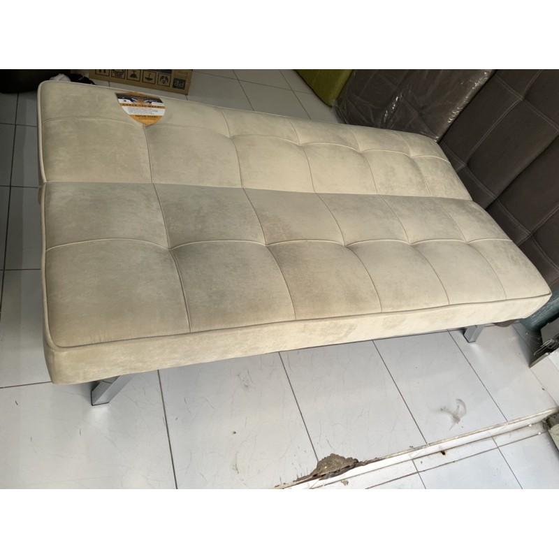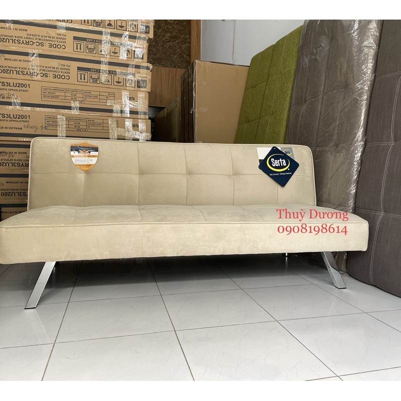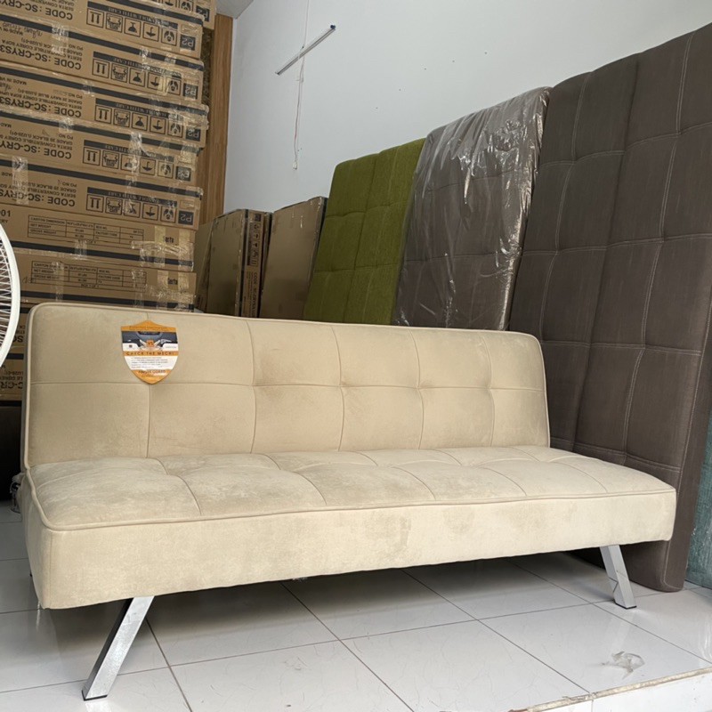 Sofa Giường vải Nhung màu kem mềm mại - Sofa Bed xuất khẩu