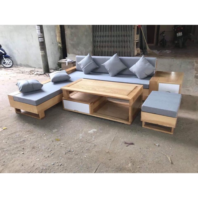 Sofa gỗ góc sồi 3 ngăn kéo SG09