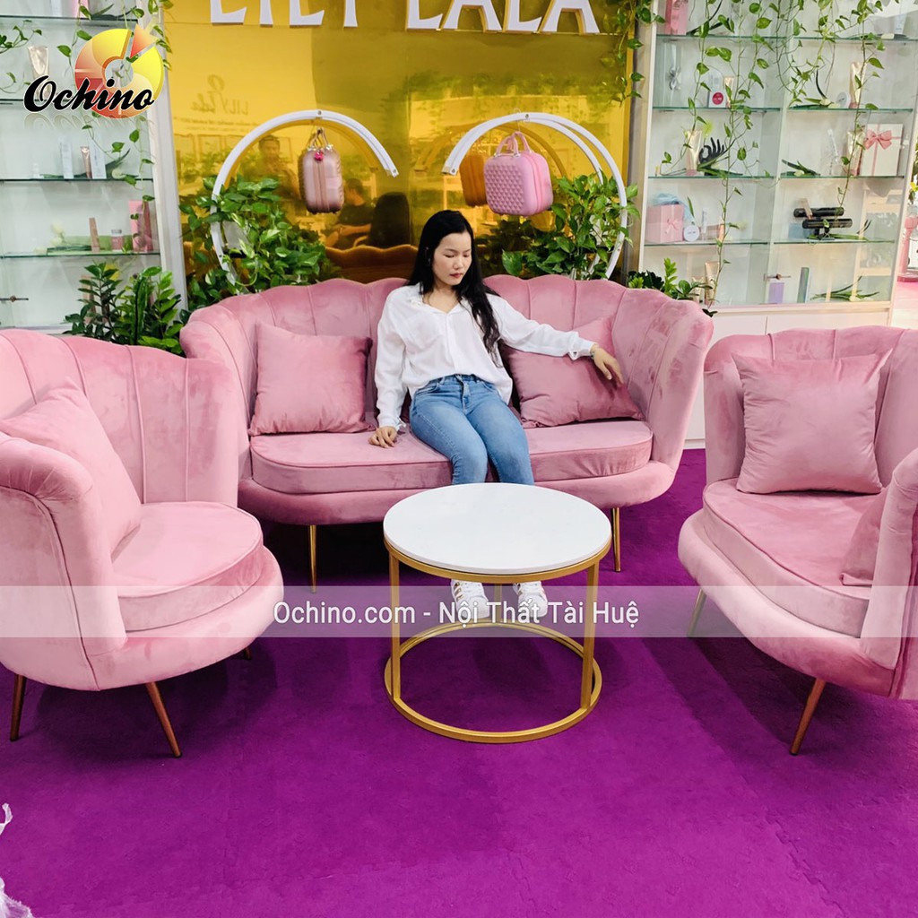 Sofa sen Dài, Ghế sofa có tựa lưng trang trí shop và phòng Khách Mẫu sen cách điệu dài 1m6Ghế sofa sò, Ghế sofa sen Đơn Cách điệu Dùng để Shop Và Chụp Hình (Có sẵn)
