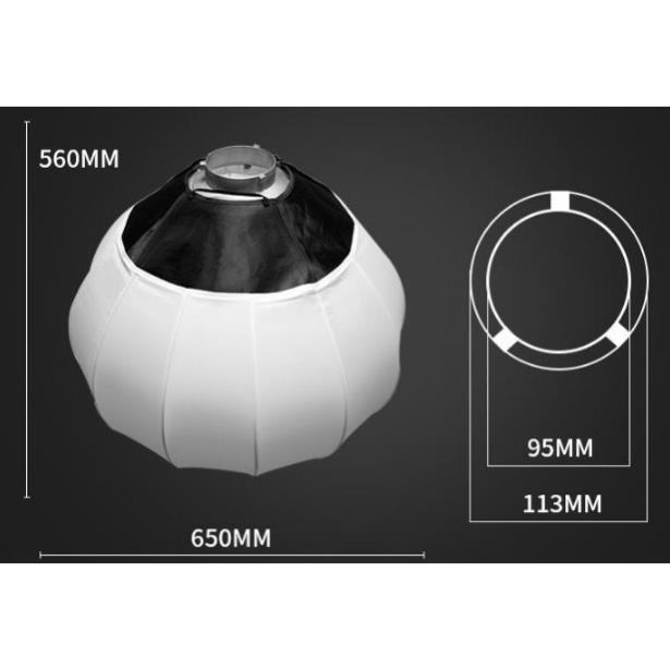 Softbox cầu JINBEI 65cm khuếch tán cung cấp nguồn sáng như nguồn ánh sáng tự nhiên 360 độ và dành cho chụp ảnh hoặc quay video giúp tạo ánh sáng mềm mịn tự nhiên nhất. Softbox cầu JINBEI 65cm với trọng lượng nhẹ dễ dàng thao tác lắp đặt, ngàm Bowens phù hợp với hầu hết các dòng đèn studio quay phim chụp ảnh hiện nay. Sản phẩm softbox cầu 65cm chính hãng Jinbei được bán tại thietbiquayphim.com với giá tốt nhất thị trường.THÔNG SỐ KỸ THUẬT: