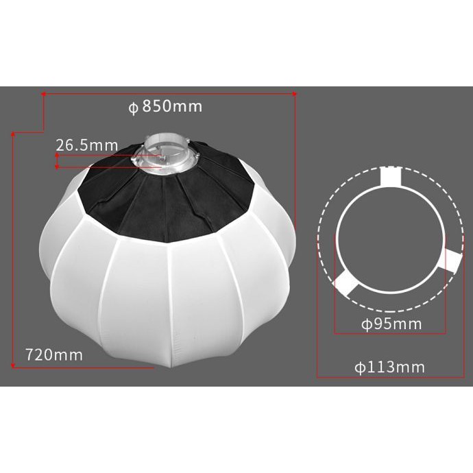 Softbox cầu JINBEI 80cm khuếch tán cung cấp nguồn sáng như nguồn ánh sáng tự nhiên 360 độ và dành cho chụp ảnh hoặc quay video giúp tạo ánh sáng mềm mịn tự nhiên nhất. Softbox cầu JINBEI 80cm với trọng lượng nhẹ dễ dàng thao tác lắp đặt, ngàm Bowens phù hợp với hầu hết các dòng đèn studio quay phim chụp ảnh hiện nay.THÔNG SỐ KỸ THUẬT: