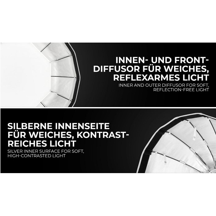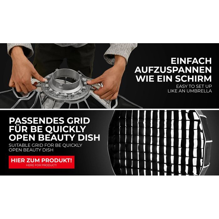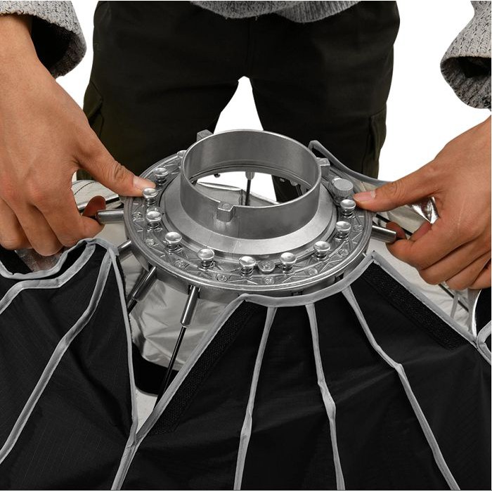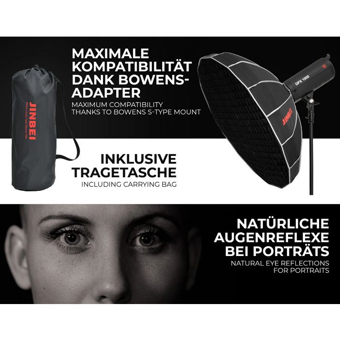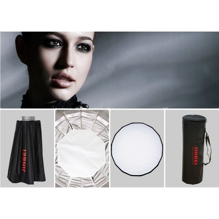 Softbox dù Beauty Dish Jinbei 85cm là một phụ kiện lý tưởng cho chụp ảnh chân dung, thời trang…BE-85 Jinbei thao tác lắp đặt thu gọn rất đơn giản, nhanh chóng và hiệu quả, thuận tiện chụp ngoài trời để mang theo rất gọn gàng. Với 16 thanh đỡ dù làm cho softbox gần tròn hơn, hiệu ứng ánh sáng tự nhiên mềm mịn, đẹp mắt.THÔNG SỐ KỸ THUẬT: