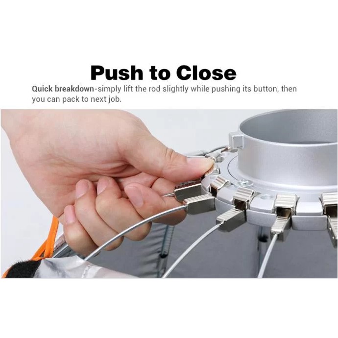 Softbox Parabolic thao tác nhanh Godox QR-P90 là một phụ kiện studio thiết bị phòng chụp quen thuộc và rất cần thiết trong phòng chụp Studio, cũng có thể sử dụng để chụp ngoại cảnh. P90 Parabolic Softbox này của Godox được thiết kế 16 cạnh có kích thước 90cm. Nó cung cấp đầu ra tập trung, mềm mại với cạnh sắc nét, mạnh mẽ, mang lại kích thước và chi tiết cho đối tượng của bạn cũng như tự nhiên. Godox QR-P90 lắp đặt dễ dàng để chụp với hiệu ứng ánh sáng bão hòa cao, hoạt động đơn giản, tính di động tuyệt vời và nhiều ứng dụng. Sản phẩm Softbox Parabolic thao tác nhanh Godox QR-P90 được bán tại thietbiquayphim.com với giá tốt nhất.THÔNG SỐ KỸ THUẬT: