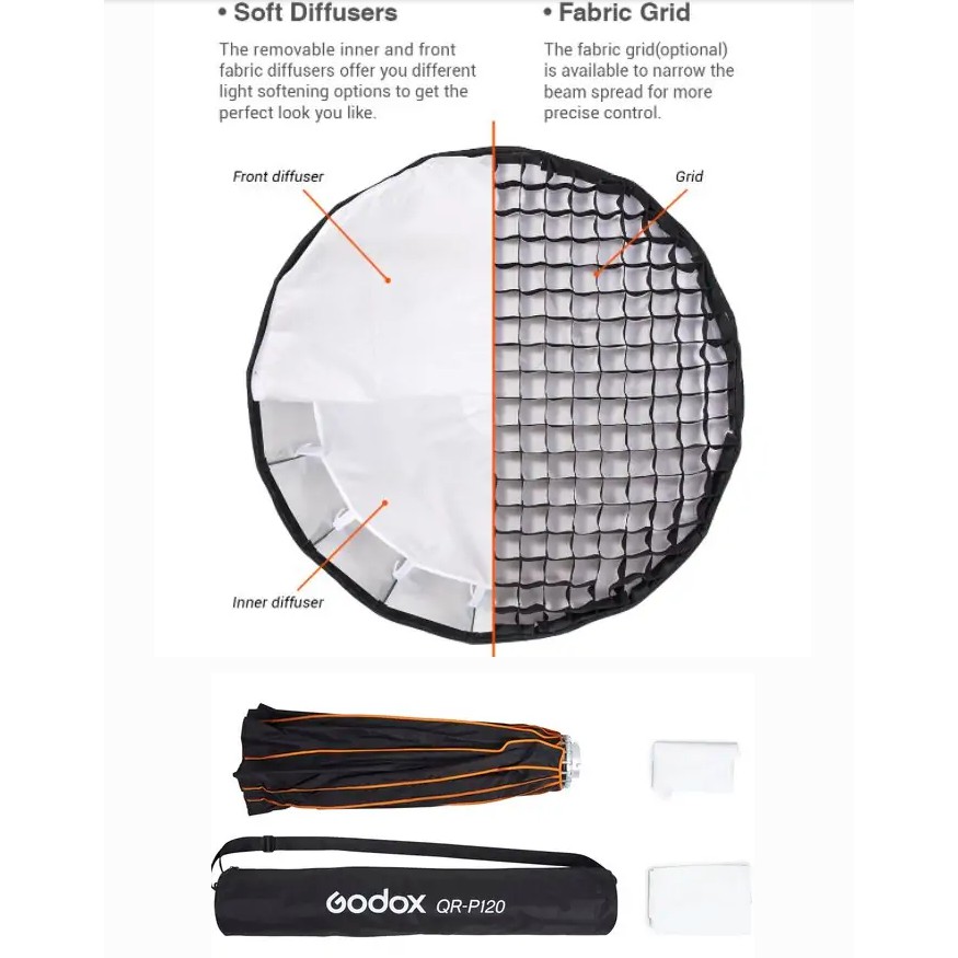 Cameras & Flycam > Phụ kiện máy ảnh > Thiết bị ánh sáng và phòng chụp || [Mã 44ELSALE2 giảm 7% đơn 300K] Softbox Parabolic thao tác nhanh Godox QR-P70,QR-P90, QR-P120Còn hàng