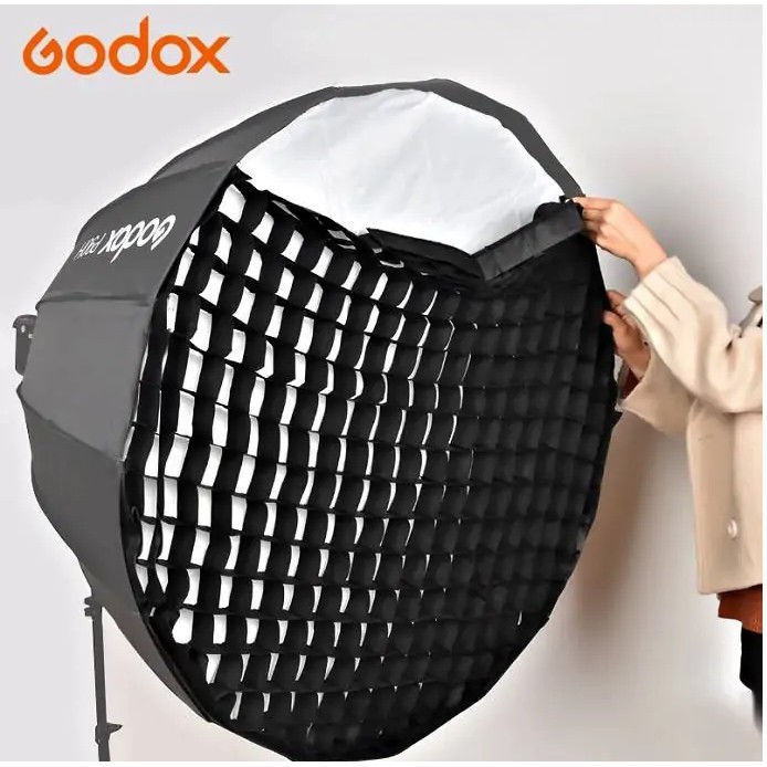 Softbox Parabolic thao tác nhanh Godox QR là một hữu ích khi chụp chân dung hoặc thời trang, Parabolic Softbox này của Godox được thiết kế 16 cạnh. Nó cung cấp đầu ra tập trung, mềm mại với cạnh sắc nét, mạnh mẽ, mang lại kích thước và chi tiết cho đối tượng của bạn cũng như tự nhiên, nhìn nổi bật trong mắt họ. Độ sâu độc đáo của công cụ sửa đổi tạo ra sự suy giảm đáng kể ở rìa trường và do đó, mức độ kiểm soát hướng được nâng cao, giảm ánh sáng tràn. Hộp mềm Parabol đi kèm với bộ khuếch tán bên ngoài và bên trong có thể tháo rời có thể được sử dụng cùng nhau, mỗi lần một hoặc hoàn toàn không để đạt được các mức độ tương phản khác nhau. Một túi đựng được bao gồm để lưu trữ và vận chuyển.THÔNG SỐ KỸ THUẬT: