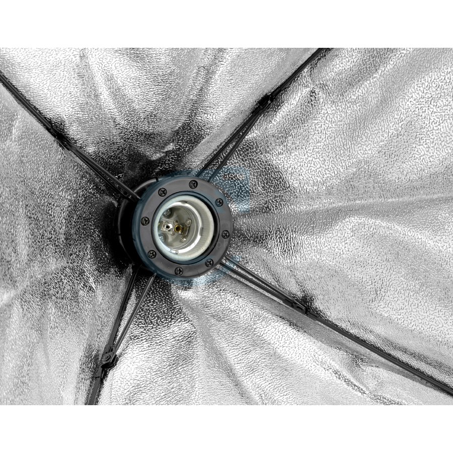 - Chụp đèn với lớp bạc bên trong giúp tập trung ánh sáng tốt hơn, sáng hơn kích thước 50x70xm. Phía bên ngoài viền có lớp vải dán để dính tấm softbox.