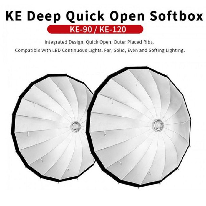 Softbox thao tác nhanh Jinbei Deep KE-120 cung cấp ánh sáng mềm cho nhiếp ảnh thời trang, làm đẹp, quyến rũ và chân dung. Trái ngược với các softbox khác, nó mang lại ánh sáng trực tiếp hơn với độ tương phản cao hơn và bóng khó hơn trên đối tượng. Softbox KE-120 được trang bị lưỡi lê loại S của Bowens và phù hợp với nhiều thiết bị pin / đèn flash studio hoặc đèn LED liên tục với kết nối thích hợp, sản phẩm softbox DEEP KE-120 chính hãng Jinbei được bán tại thietbiquayphim.comTHÔNG SỐ KỸ THUẬT: