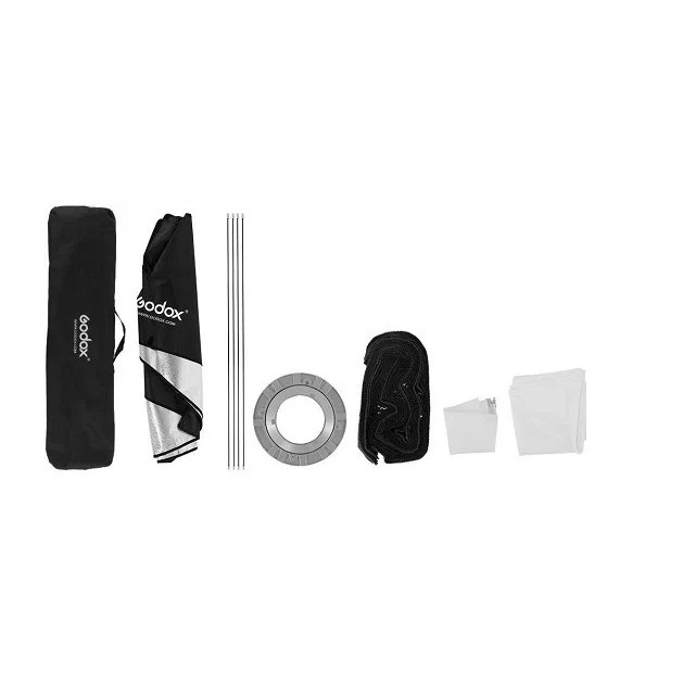 Bao gồm: Bộ softbox 2 lớp tổ ong Godox 30x120cm, adapter silver aluminium cho bowen mount, túi đựng.