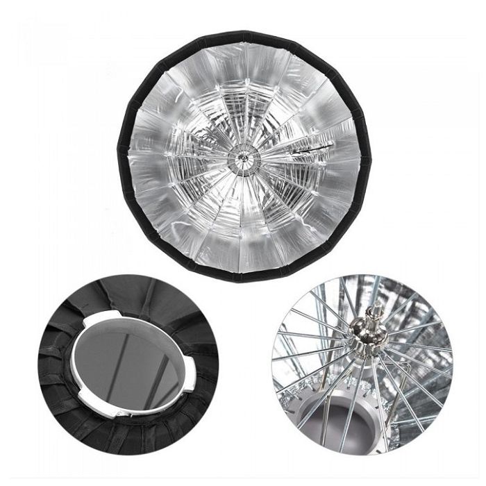 💥𝘾𝙖́𝙘 𝙩𝙞́𝙣𝙝 𝙣𝙖̆𝙣𝙜 𝙣𝙤̂̉𝙞 𝙗𝙖̣̂𝙩 𝙘𝙪̉𝙖 𝙨𝙖̉𝙣 𝙥𝙝𝙖̂̉𝙢:👉: Softbox tổ ong thao tác nhanh Godox AD-S65S với bề mặt màu đen, bên trong là vật liệu phản chiếu màu bạc, được thiết kế đặc biệt cho đèn flash như AD300Pro, AD400Pro hoặc ML60.