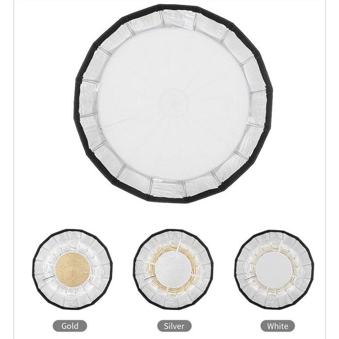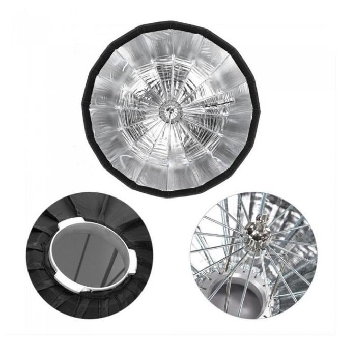 💥𝘾𝙖́𝙘 𝙩𝙞́𝙣𝙝 𝙣𝙖̆𝙣𝙜 𝙣𝙤̂̉𝙞 𝙗𝙖̣̂𝙩 𝙘𝙪̉𝙖 𝙨𝙖̉𝙣 𝙥𝙝𝙖̂̉𝙢:👉: Softbox tổ ong thao tác nhanh Godox AD-S65S với bề mặt màu đen, bên trong là vật liệu phản chiếu màu bạc, được thiết kế đặc biệt cho đèn flash như AD300Pro, AD400Pro hoặc ML60.