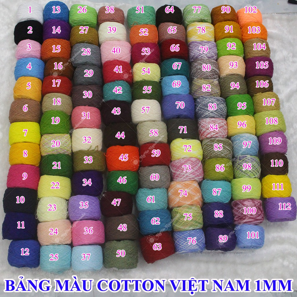 Giới thiệu Sợi cotton Việt Nam 1mm màu 01 - 46 (màu trơn) 16k/cuộn/~ 100gram