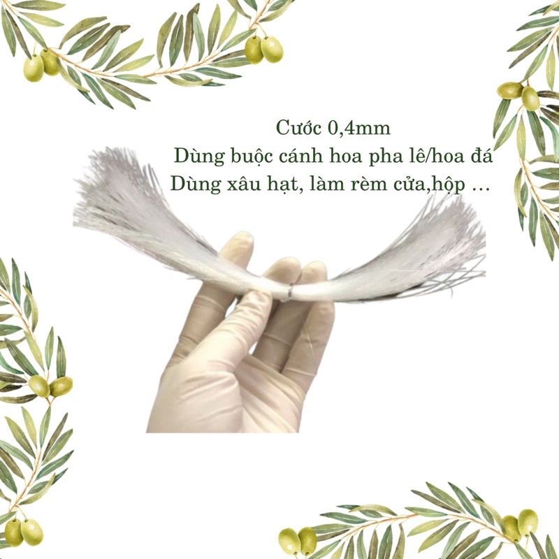 4. Mục đích sử dụng cước: - Buộc cánh hoa đá pha lê, hoặc dùng để xâu hạt, kết thú bằng hạt cườm...