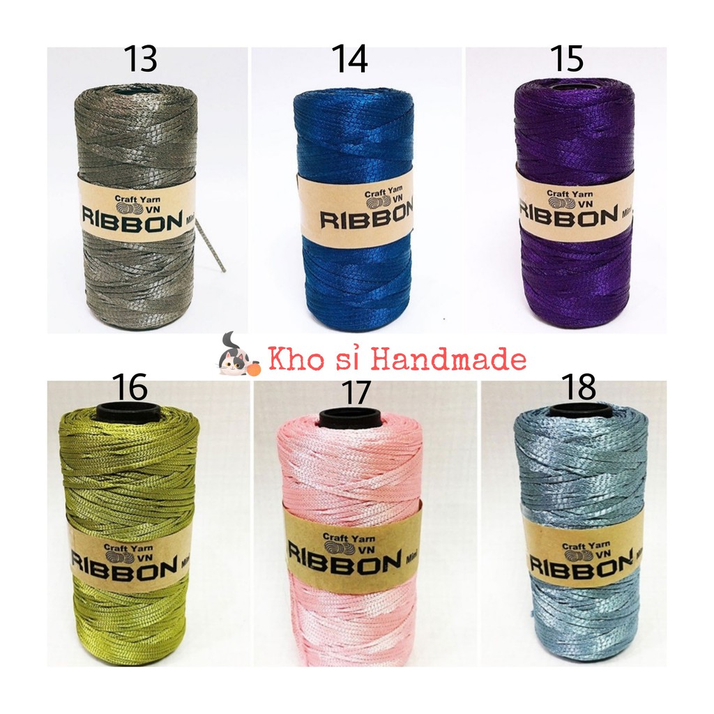 Sợi Ribbon có độ bóng đẹp chuyên dùng để móc mũ nón, túi xách, giày dép.