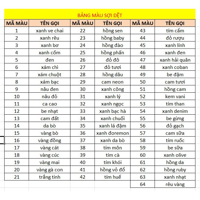 Bảng màu sợi dệt có 66 mã màu chạy số từ 01-66. 1 màu chạy mã từ đậm tới nhạt rất phong phú. Sợi dệt không bóng như sợi thô, sợi ribbon mà màu sắc có độ lỳ, rất vintage. Phù hợp với các bạn thích phong cách vintage.