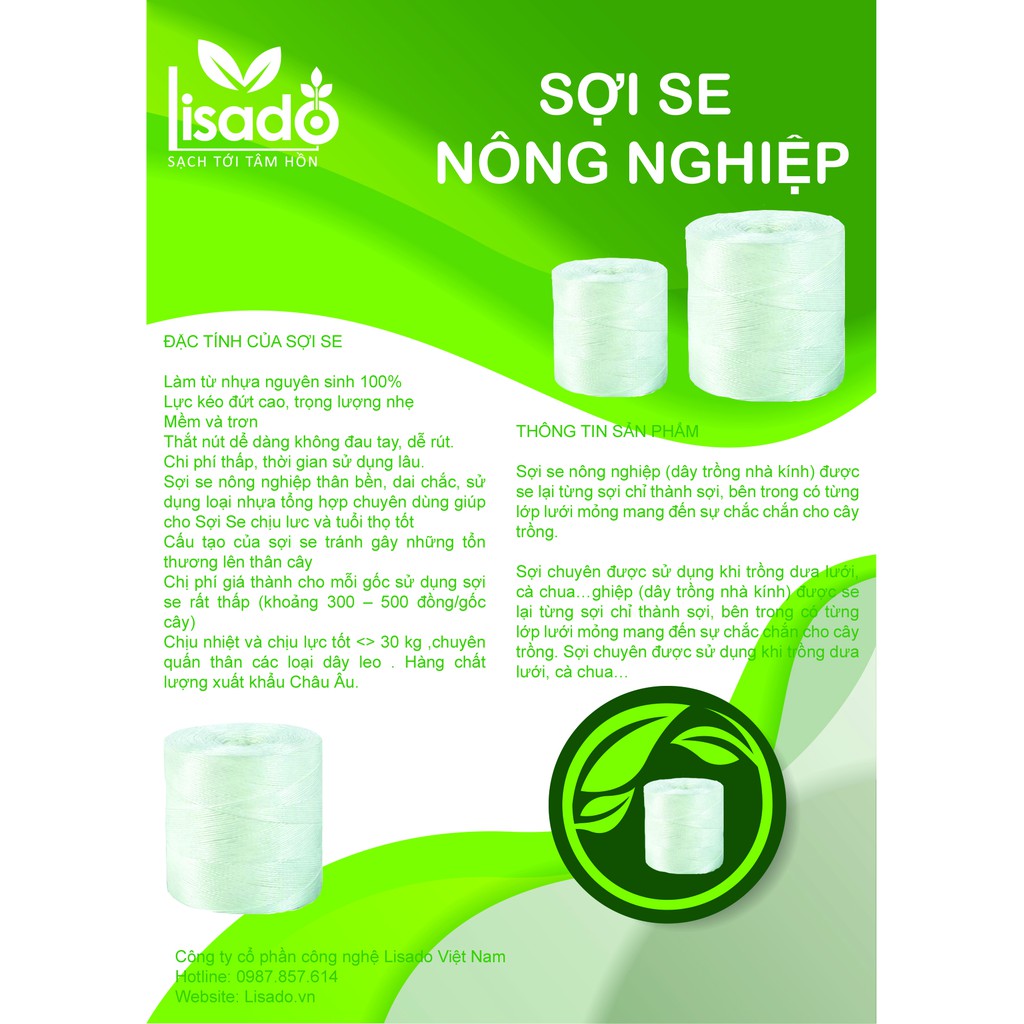 Sợi se nông nghiệp (dây trồng nhà kính) được se lại từng sợi chỉ thành sợi, bên trong có từng lớp lưới mỏng mang đến sự chắc chắn cho cây trồng. Sợi chuyên được sử dụng khi trồng dưa lưới, cà chua…Thông tin sản phẩm