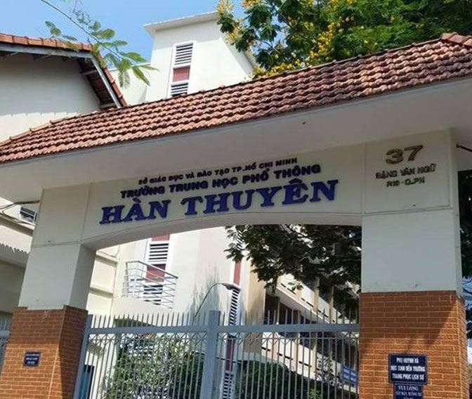 Sơn phục hồi bảng tại trường PTTH Hàn Thuyên