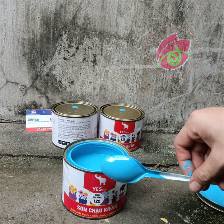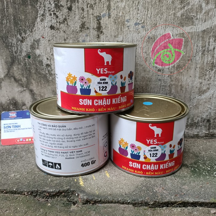 Giới thiệu Sơn chậu cảnh, chậu kiểng 1K Yes Paint màu xanh hòa bình 400g