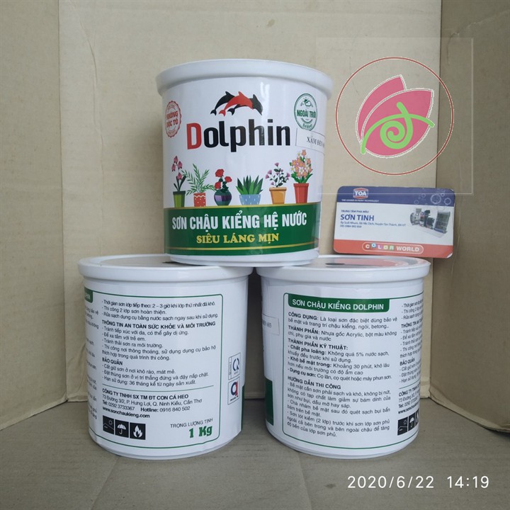 * Sơn hệ nước ( sơn nước) không độc hại cho sức khỏe, mùi rất nhẹ và dễ chịuBám cực kỳ tốt cho bề mặt chậu kiểng xi măng. Rất lâu phai màu khi để ngoài trời, các loại sơn nước kém chất lượng để ngoài trời rất nhanh phai màu* Sơn chậu cây cảnh hệ nước DOLPHIN- Sơn chậu cây cảnh hệ nước chuyên dụng đầu tiên tại Việt Nam với độ bền cực kỳ cao và chống phai màu hiệu quả.