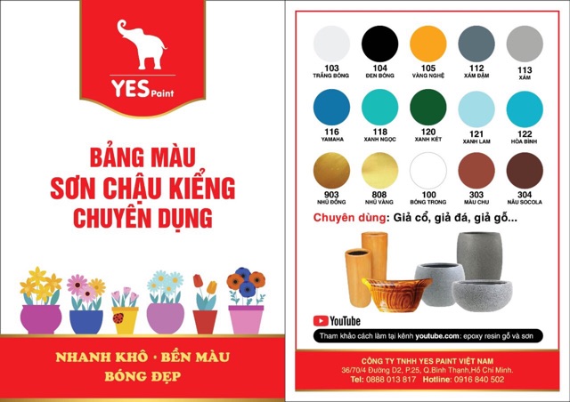 SƠN CHẬU KIỂNG MÀU CHU 303 YES 1KSơn Yes 1k chuyên dụng cho chậu kiểng, được dùng như sơn nước và bám dính tốt trên tất cả các bề mặt bề tông