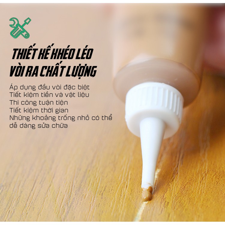 Công dụng: Trám vào những khuyết điểm trên bề mặt gỗ trong quá trình hoàn thiện công trình. Keo che khuyết điểm sẽ xử lí được các trường hợp:-Vết nứt, vết xước